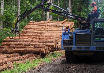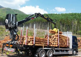 山土場から市場や製材工場等へ自社トラックで丸太を運送。